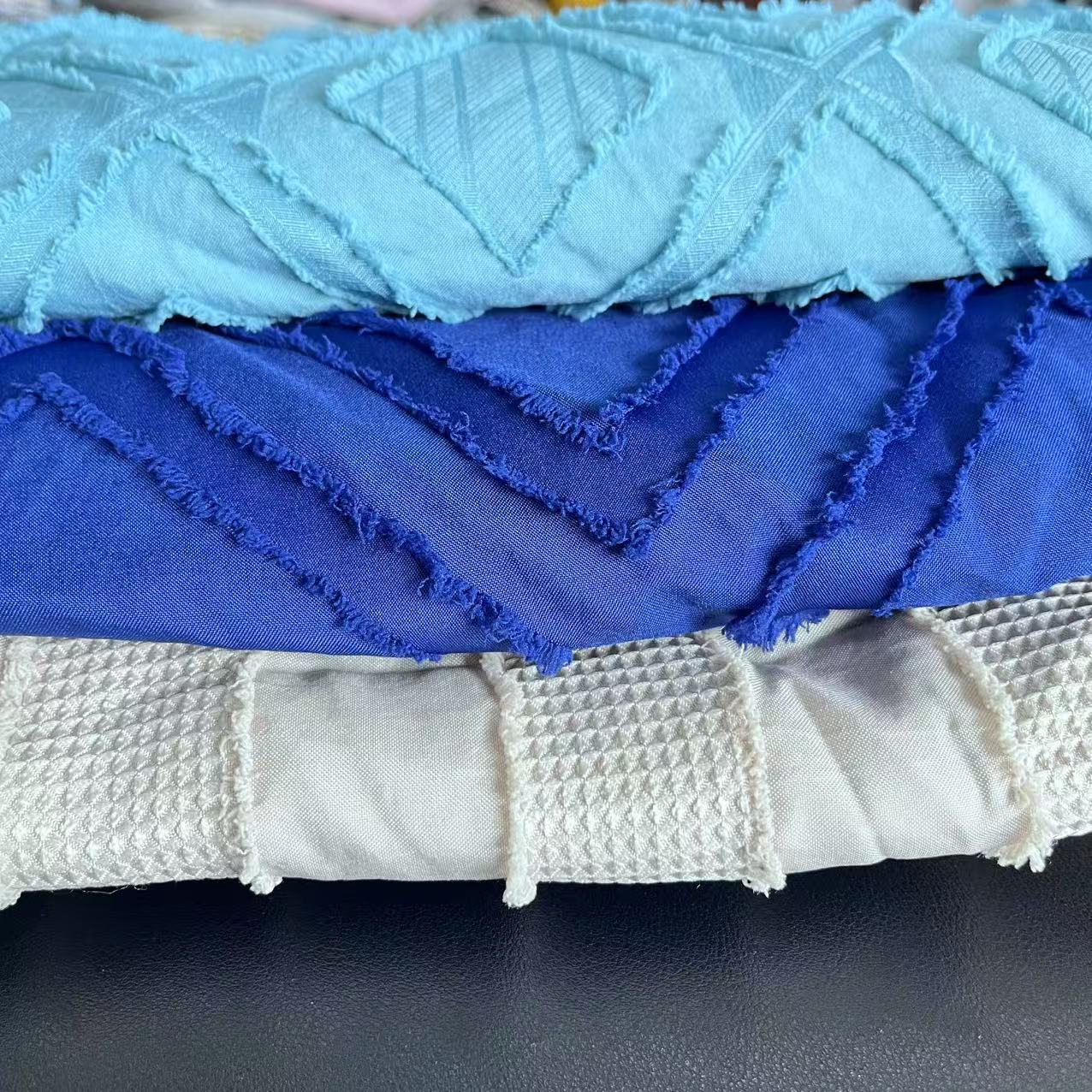 Saat ini, perusahaan memiliki peralatan sebagai berikut: 5 set mesin peregangan dan 7 truk pembengkok. Kami terutama berurusan dengan kain kosong poliester, berbagai spesifikasi kain yang disikat, kain yang dicetak dan diwarnai, tempat tidur dan produk tekstil rumah lainnya.